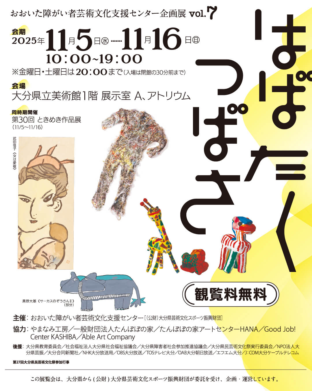 今回、沖縄県立博物館・美術館の美術館企画展「つくる冒険 日本のアール・ブリュット45人」(2/22~3/29)のプレイベントとして、県内の障害のある方々の作品を紹介する「わったーアール・ブリュット展」を開催します。