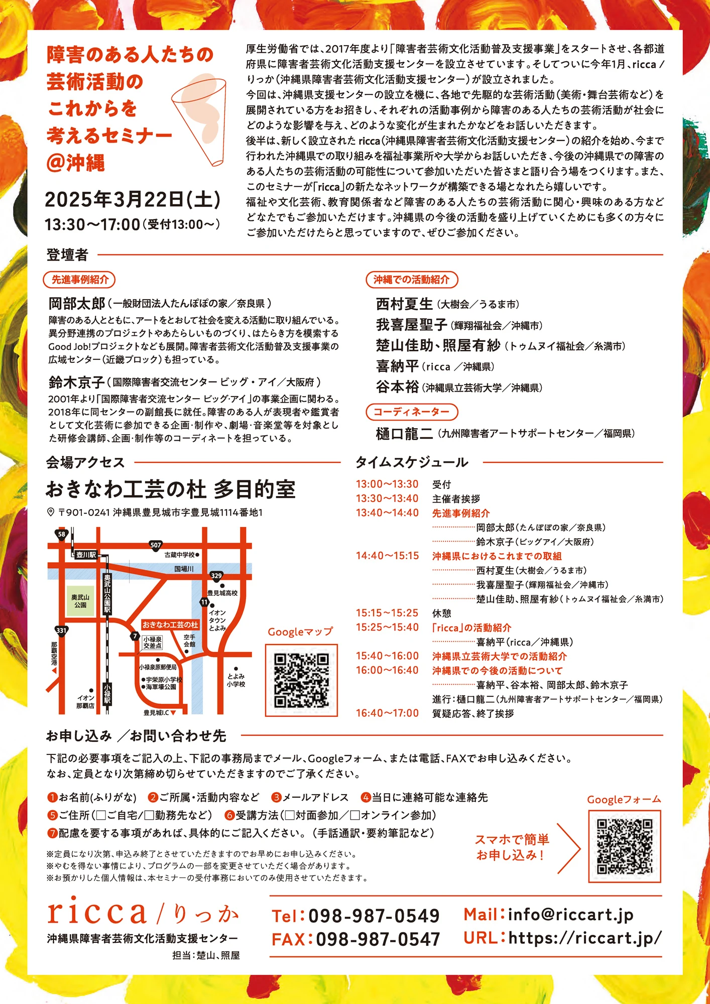 【2025.3.22開催】「障害のある人たちの芸術活動のこれからを考えるセミナー@沖縄」