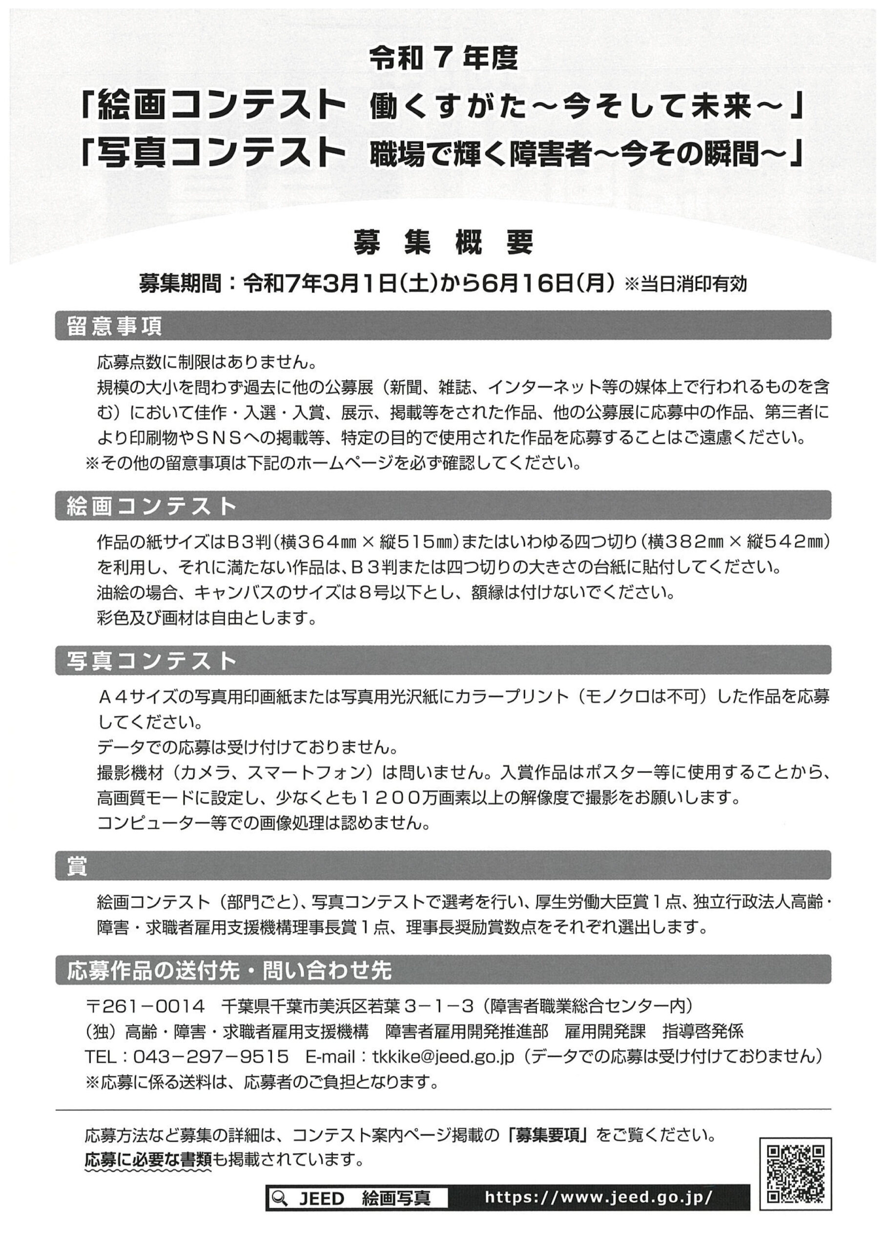 TEL:043-297-9515E-mail:tkkike@jeed.go.jp(データでの応募は受け付けておりません)