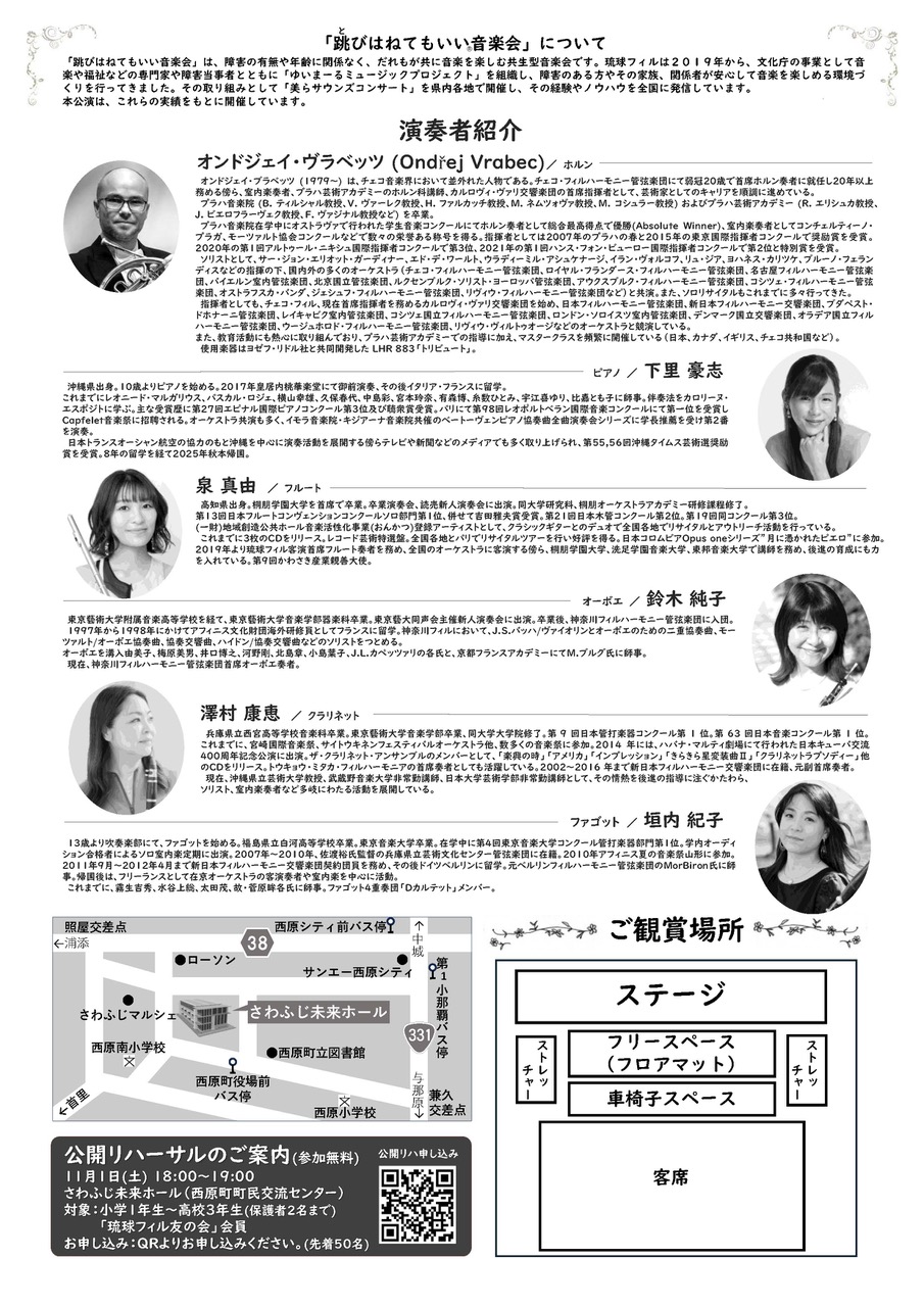 対象/小学1年生~高校3年生(保護者2名まで)先着50名、「琉球フィル友の会」会員